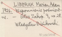LIBERAK Marian Adam 1926 "Hej! już się nie zieleni..."