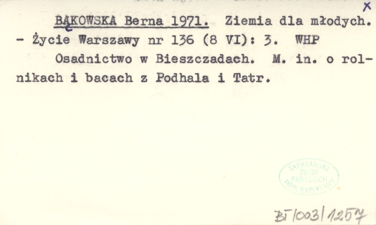 Życie Warszawy, Nr 136 (8 VI): 3. Osadnictwo w Bieszczadach. M. in. o rolnikach i bacach z Podhala i Tatr.