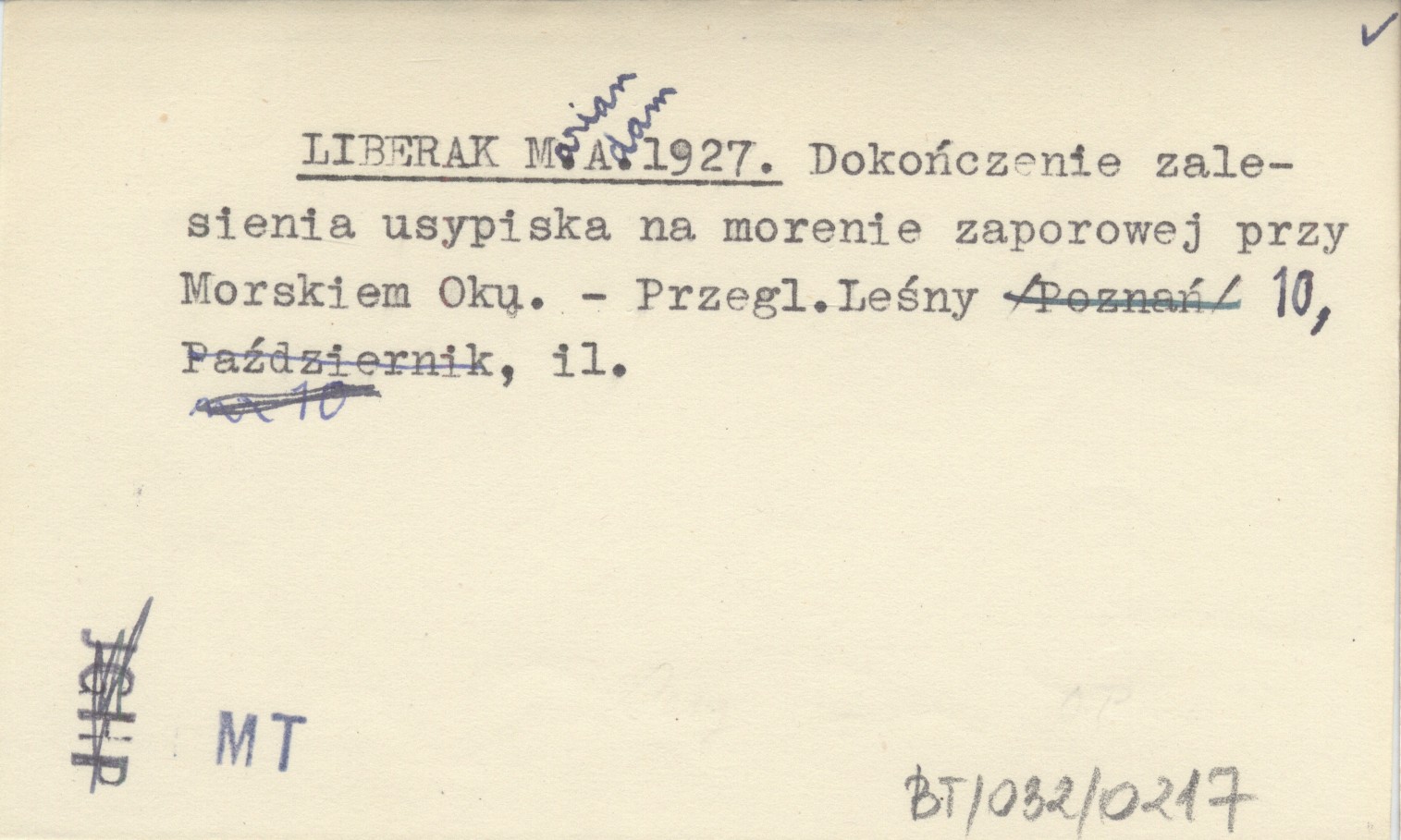 LIBERAK Marian Adam 1927 Dokończenie zalesienia usypiska na morenie zaporowej przy Morskiem Oku.