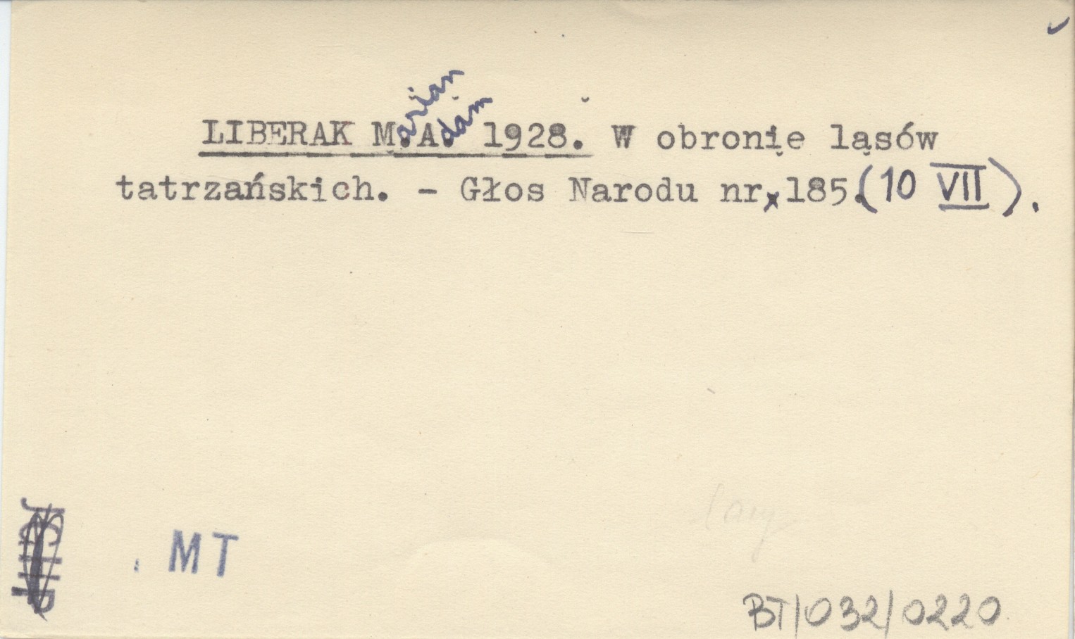 LIBERAK Marian Adam 1928 W obronie lasów tatrzańskich.