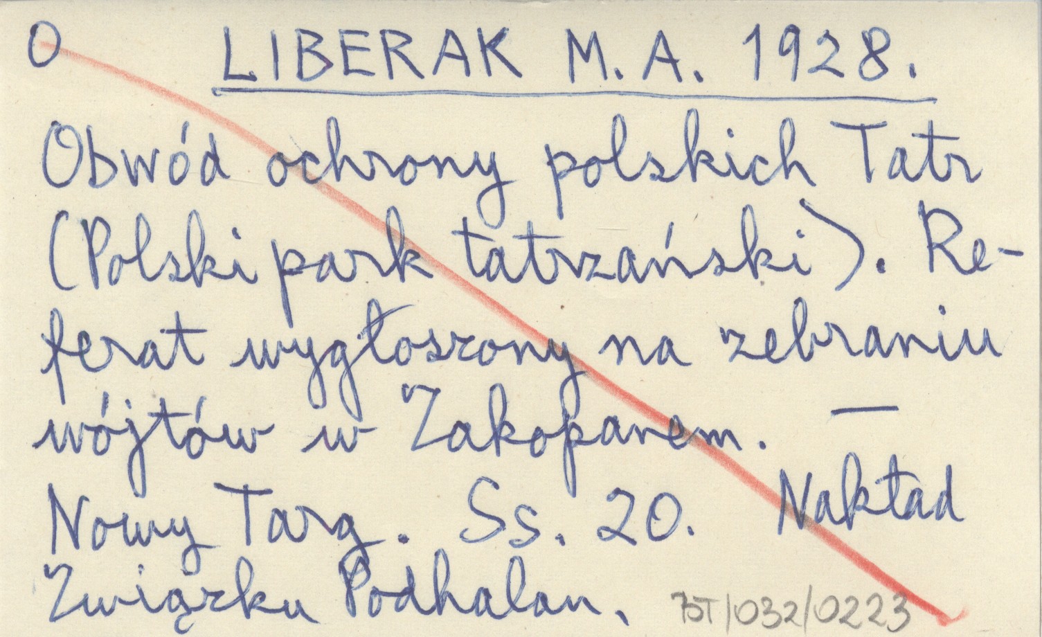 LIBERAK M. A. 1928 Obwód ochrony polskich Tatr (Polski park tatrzański). Referat wygłoszony na zebraniu wójtów w Zakopanem.