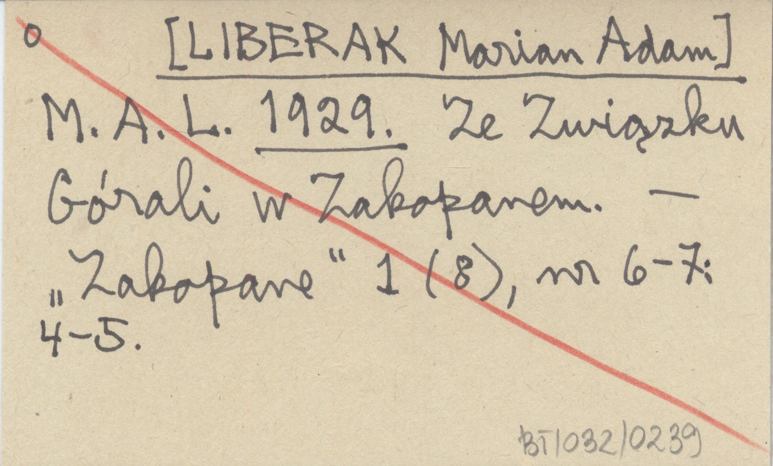 M. A. L. [LIBERAK Marian Adam] 1929 Ze Związku Górali w Zakopanem.
