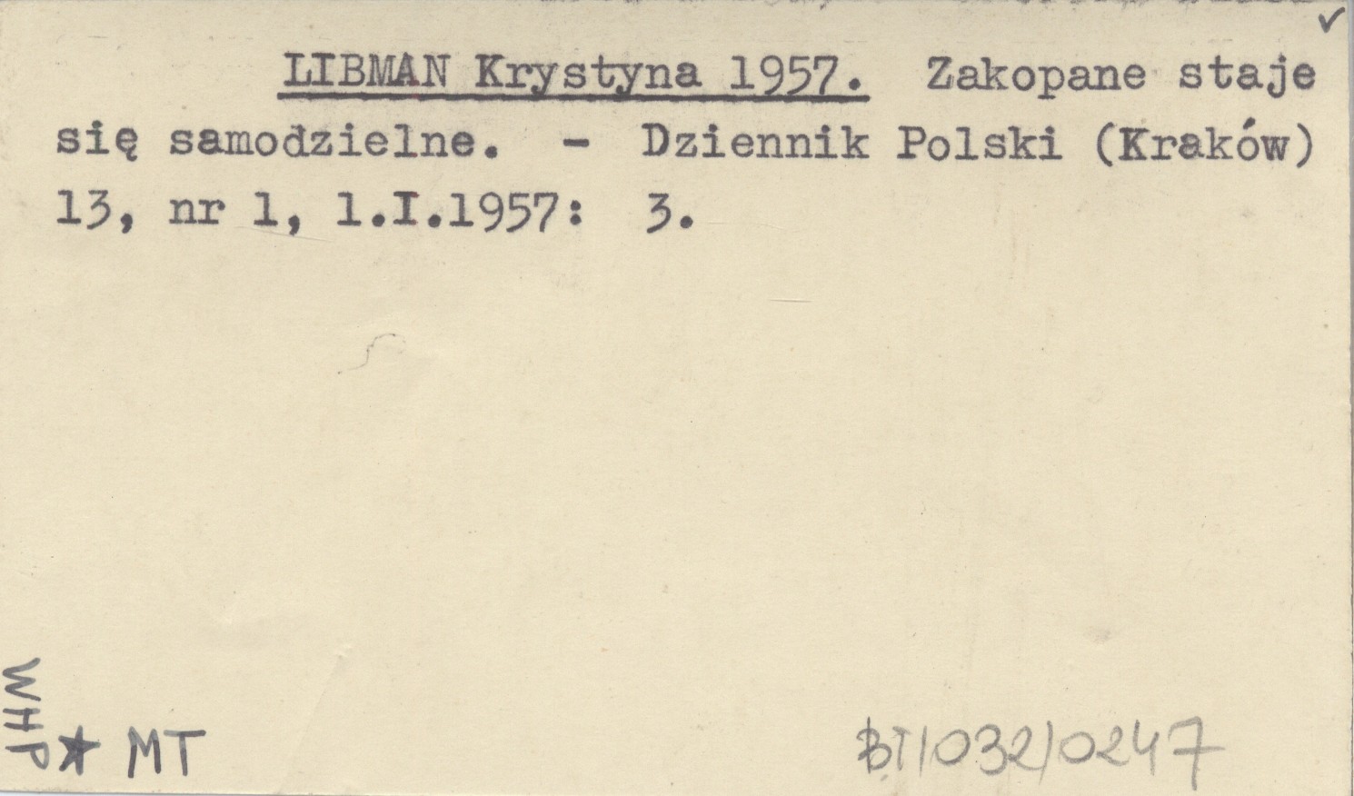LIBMAN Krystyna 1957 Zakopane staje się samodzielne.