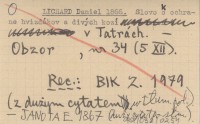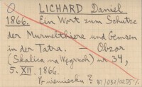 LICHARD Daniel 1866 Slovo o ochrane hvizdákov a divých kozí v Tatrách.