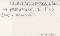 LICHODZIEJEWSKA Feliksa 1966 Władysław Broniewski.
