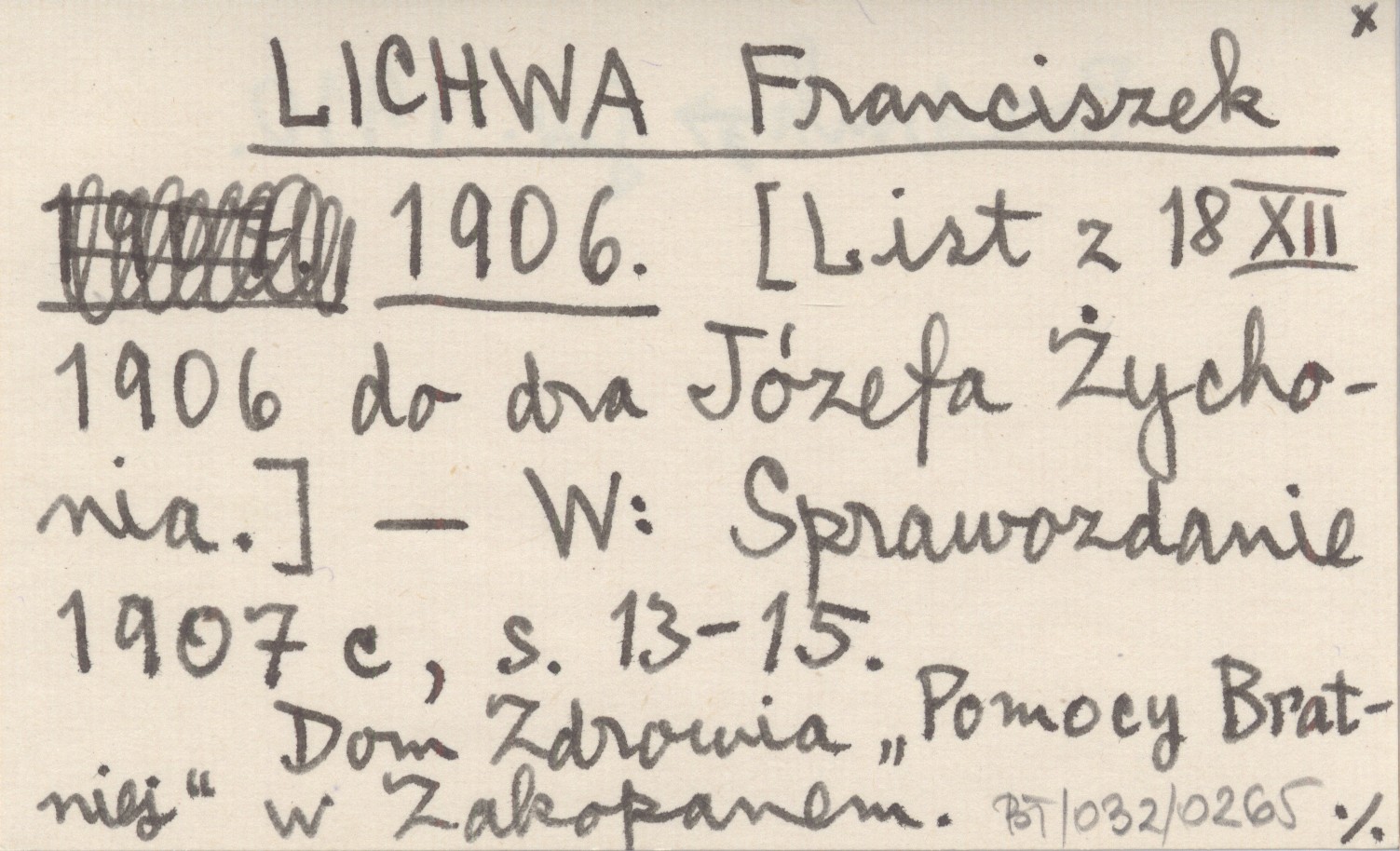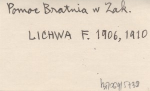 LICHWA Franciszek 1906 [List z 18 XII 1906 do dra Józefa Żychonia.]