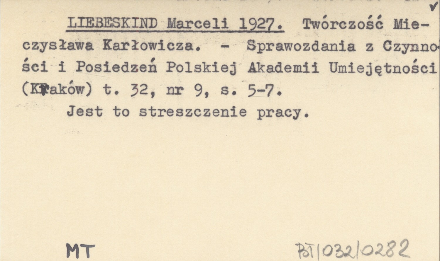 LIEBESKIND Marceli 1927 Twórczość Mieczysława Karłowicza.