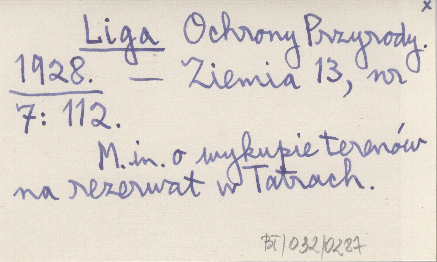 Ziemia, 13, nr 7: 112. M. in. o wykupie terenów na rezerwat w Tatrach.