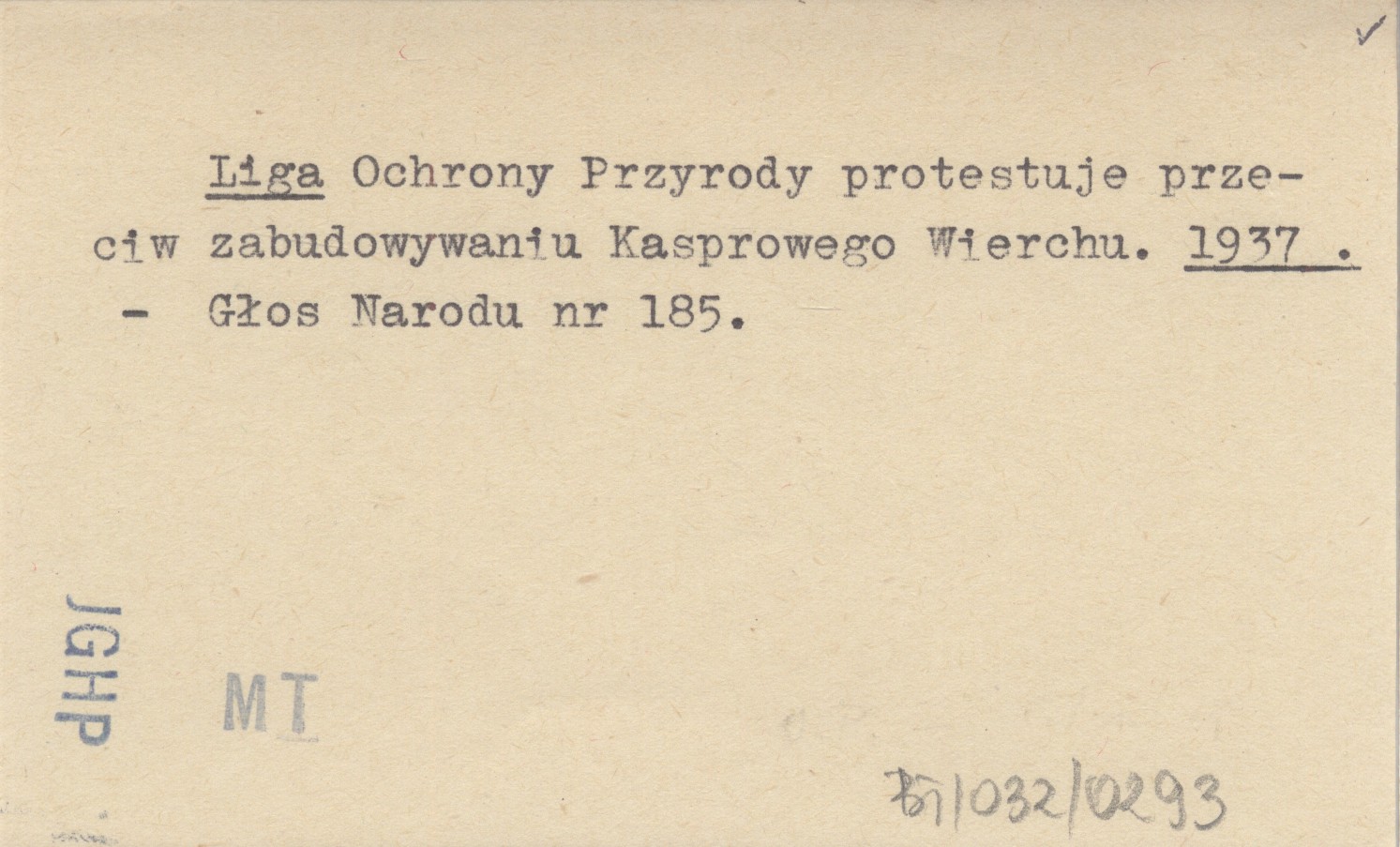 Liga Ochrony Przyrody protestuje przeciw zabudowaniu Kasprowego Wierchu. 1937