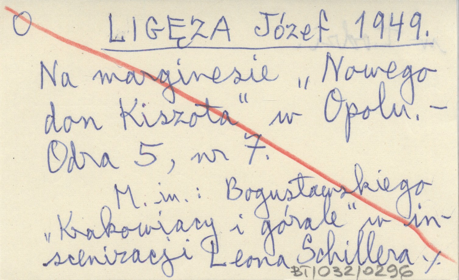LIGĘZA Józef 1949 Na marginesie "Nowego don Kiszota" w Opolu.