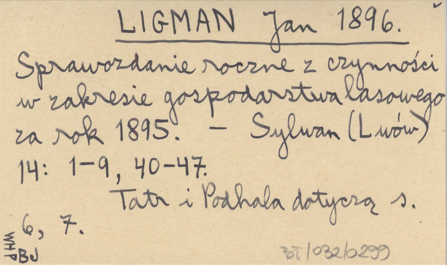 LIGMAN Jan 1896 Sprawozdanie roczne z czynności w zakresie gospodarstwa lasowego za rok 1895.