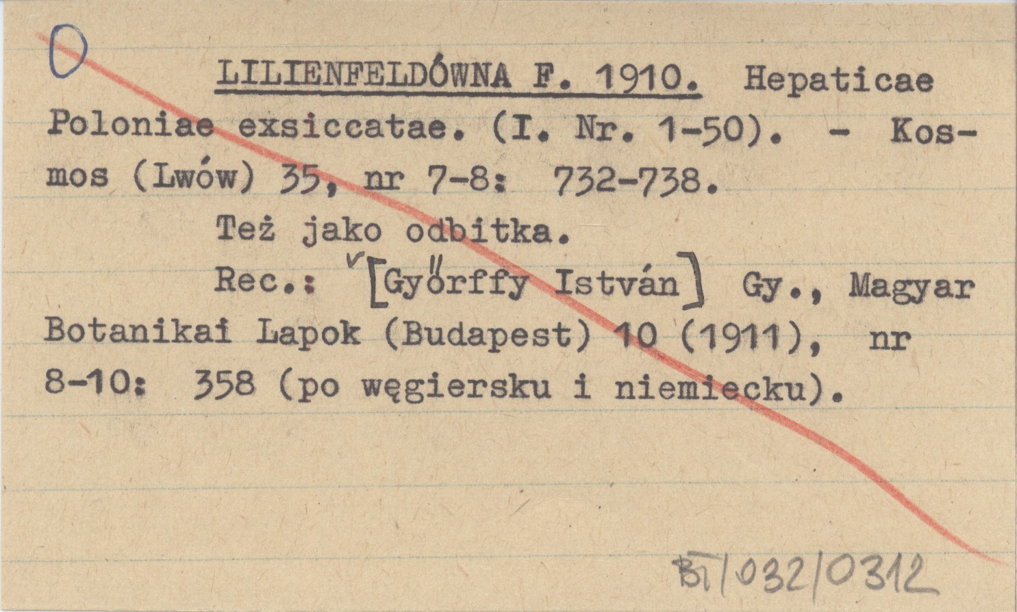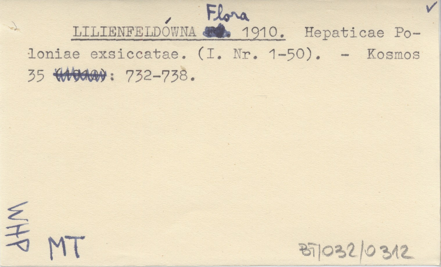 LILIENFELDÓWNA Flora 1910 Hepaticae Poloniae exsiccatae. (I. Nr. 1-50).
