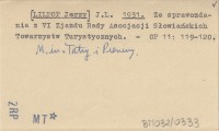 J.L. [LILPOP Jerzy] 1931 Ze sprawozdania z VI Zjazdu Rady Asocjacji Słowiańskich Towarzystw Turystycznych.