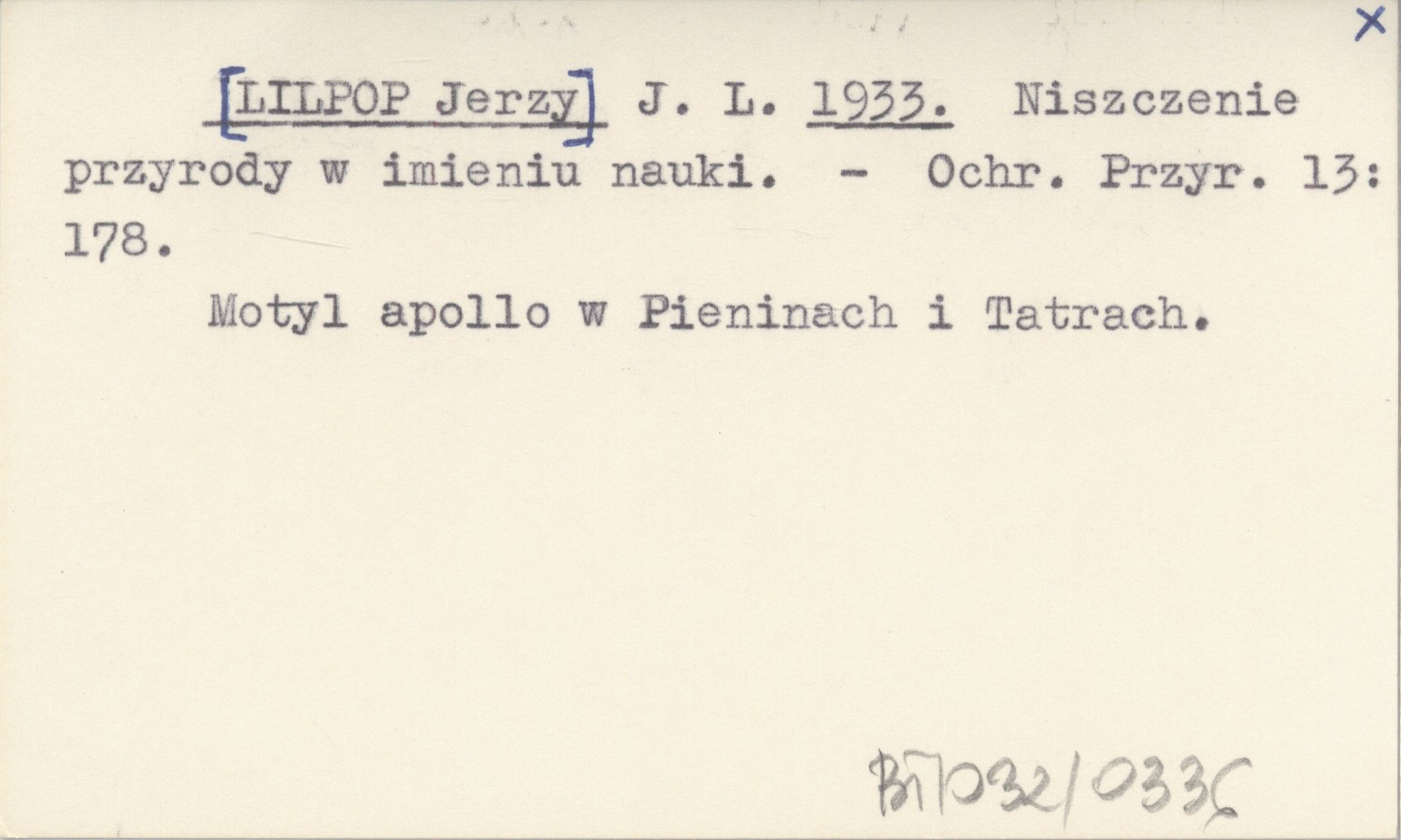 J. L. [LILPOP Jerzy] 1933 Niszczenie przyrody w imieniu nauki.