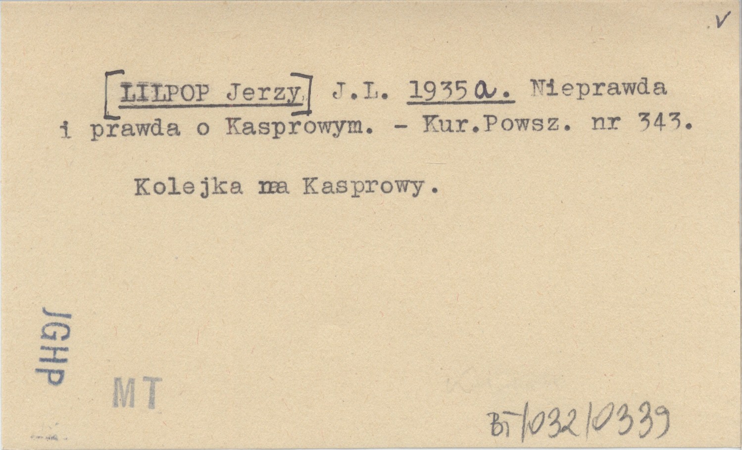 J.L. [LILPOP Jerzy] 1935 a Nieprawda i prawda o Kasprowym.