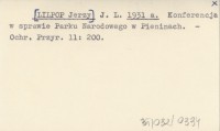 J. L. [LILPOP Jerzy] 1931 a Konferencja w sprawie Parku Narodowego w Pieninach.