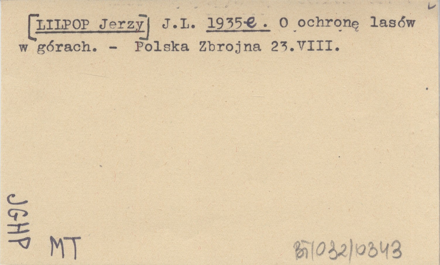 J.L. [LILPOP Jerzy] 1935 e O ochronę lasów w górach.