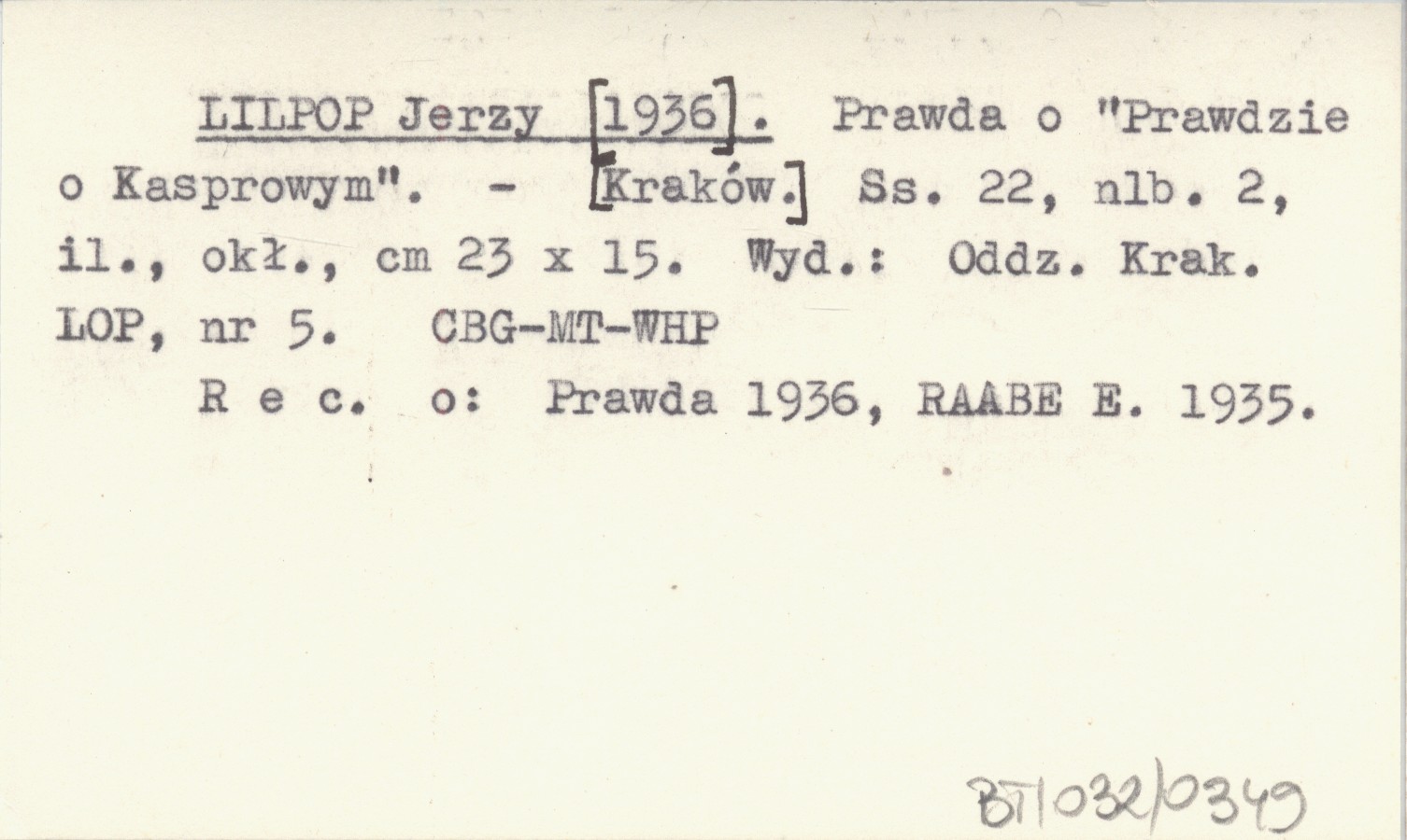 Oddz. Krak. LOP [Kraków] , Nr 5, 22 s., [2], il., okł., 23x15 cm. Rec. o: Prawda 1936, RAABE E. 1935.