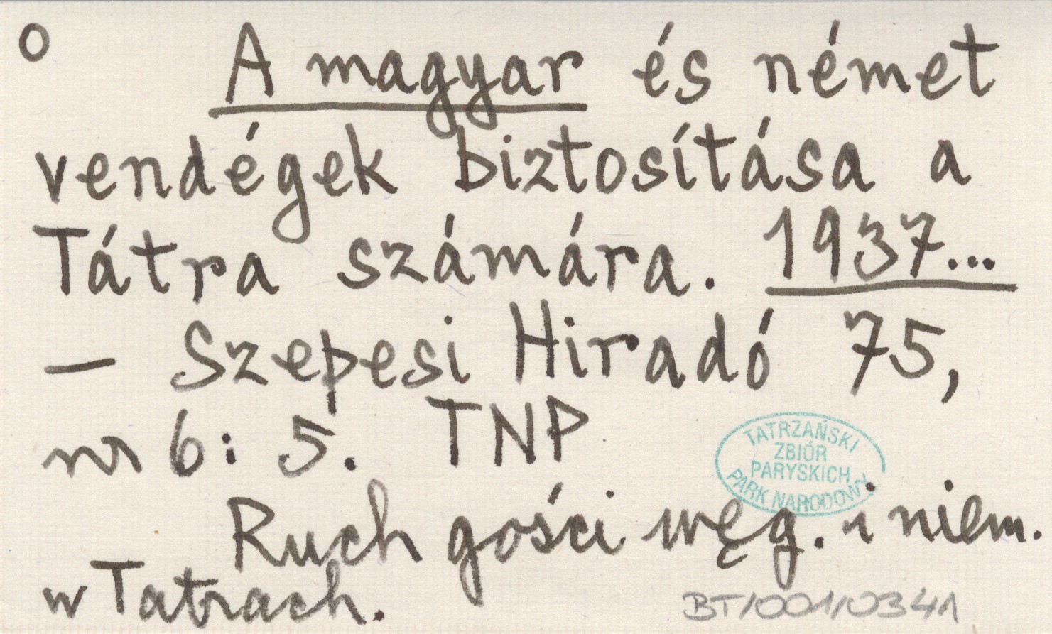 A magyar és német vendégek biztosítása a Tátra számára. 1937...