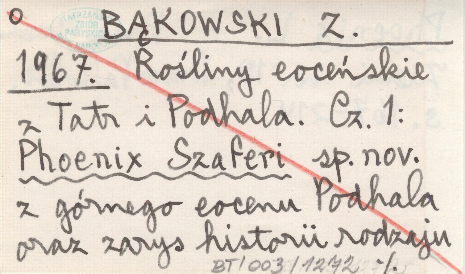 BĄKOWSKI Z. 1967 Rośliny eoceńskie z Tatr i Podhala. Cz. 1: Phoenix Szaferi sp. nov. z górnego eocenu Podhala oraz zarys historii rodzaju Phoenix L.