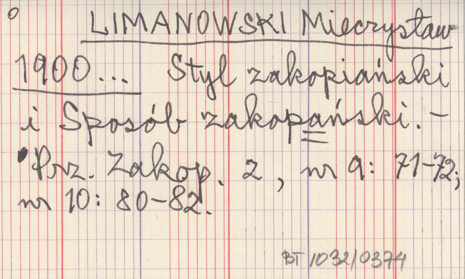 Przegląd Zakopiański, 2, nr 9: 71-72; nr 10: 80-82.
