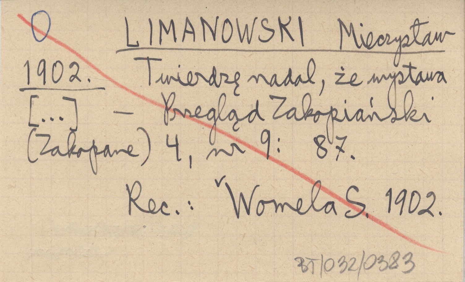 Przegląd Zakopiański (Zakopane) , 4, nr 9: 87. REC: WOMELA S. 1902