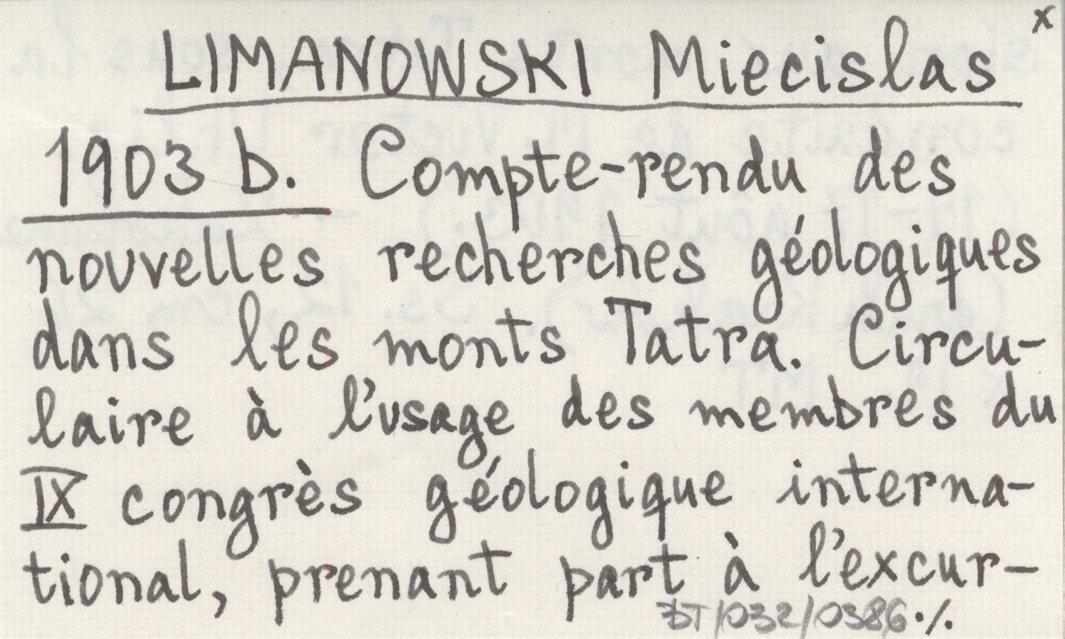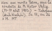LIMANOWSKI Miecislas 1903 b Compte-rendu des nouvelles recherches géologiques dans les monts Tatra. Circulaire á l'usage des membres du IX congrés géologique international, prenant part á l'excursion aux monts Tatra, sous la conduite de M. Victor Uhlig. (14-17 aôut 1903.).