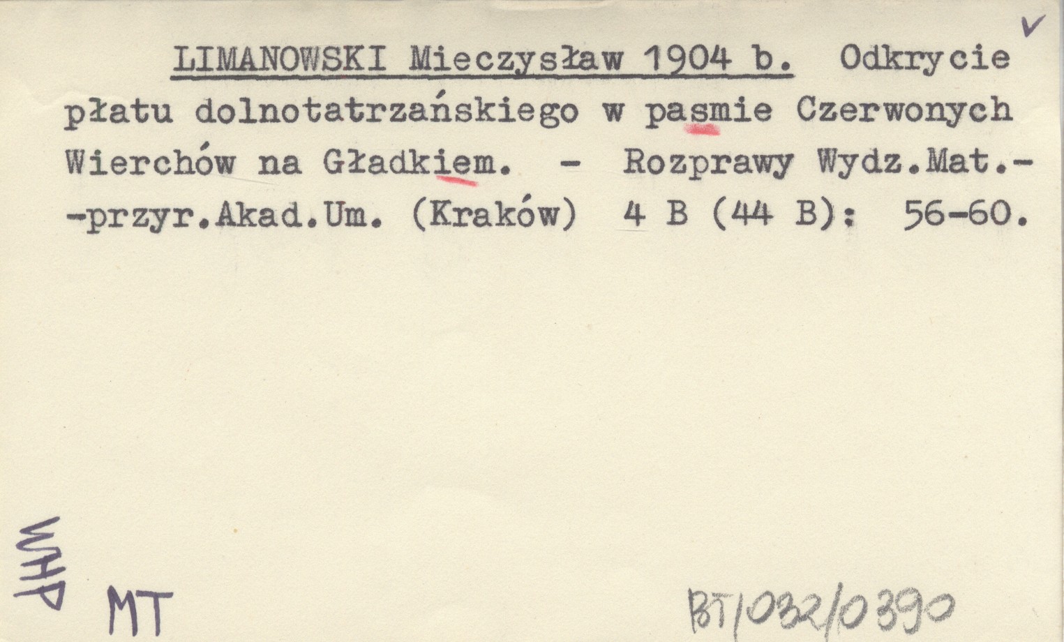 LIMANOWSKI Mieczysław 1904 b Odkrycie płatu dolnotatrzańskiego w pasmie Czerwonych Wierchów na Gładkiem.