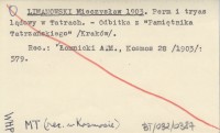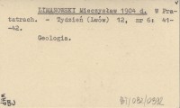 LIMANOWSKI Miecislas 1903 b Compte-rendu des nouvelles recherches géologiques dans les monts Tatra. Circulaire á l'usage des membres du IX congrés géologique international, prenant part á l'excursion aux monts Tatra, sous la conduite de M. Victor Uhlig. (14-17 aôut 1903.).