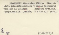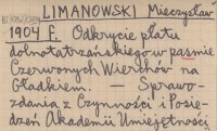 LIMANOWSKI Mieczysław 1904 c Odkrycie płatu dolnotatrzańskiego w rejonie Czerwonych Wierchów na Gładkiem. (Sur la découverte d'un lambeau de recouvrement subtatrique dans la région hauttatrique de Gładkie (monts Tatra) ).