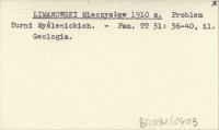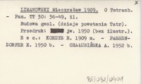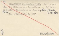 LIMANOWSKI Mieczysław 1910 Czy eocen w Tatrach transgreduje na miejscu, czy został przywleczony zdala. (Le Nummulitique de la Tatra est-il autochtone ou charrié).