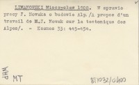 LIMANOWSKI Mieczysław 1908 W sprawie pracy J. Nowaka o budowie Alp. (A propos d'un travail de M.J. Nowak sur la tectonique des Alpes).