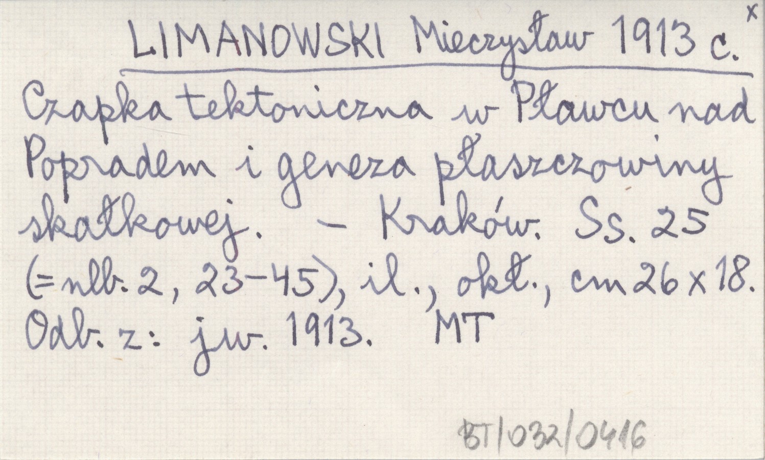 LIMANOWSKI Mieczysław 1913 c Czapka tektoniczna w Pławcu nad Popradem i geneza płaszczowiny skałkowej.