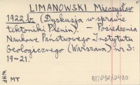 LIMANOWSKI Mieczysław 1922 b (Dyskusja w sprawie tektoniki Pienin).