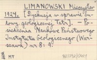 LIMANOWSKI Mieczysław 1924 [Dyskusja w sprawie budowy geologicznej Tatr].