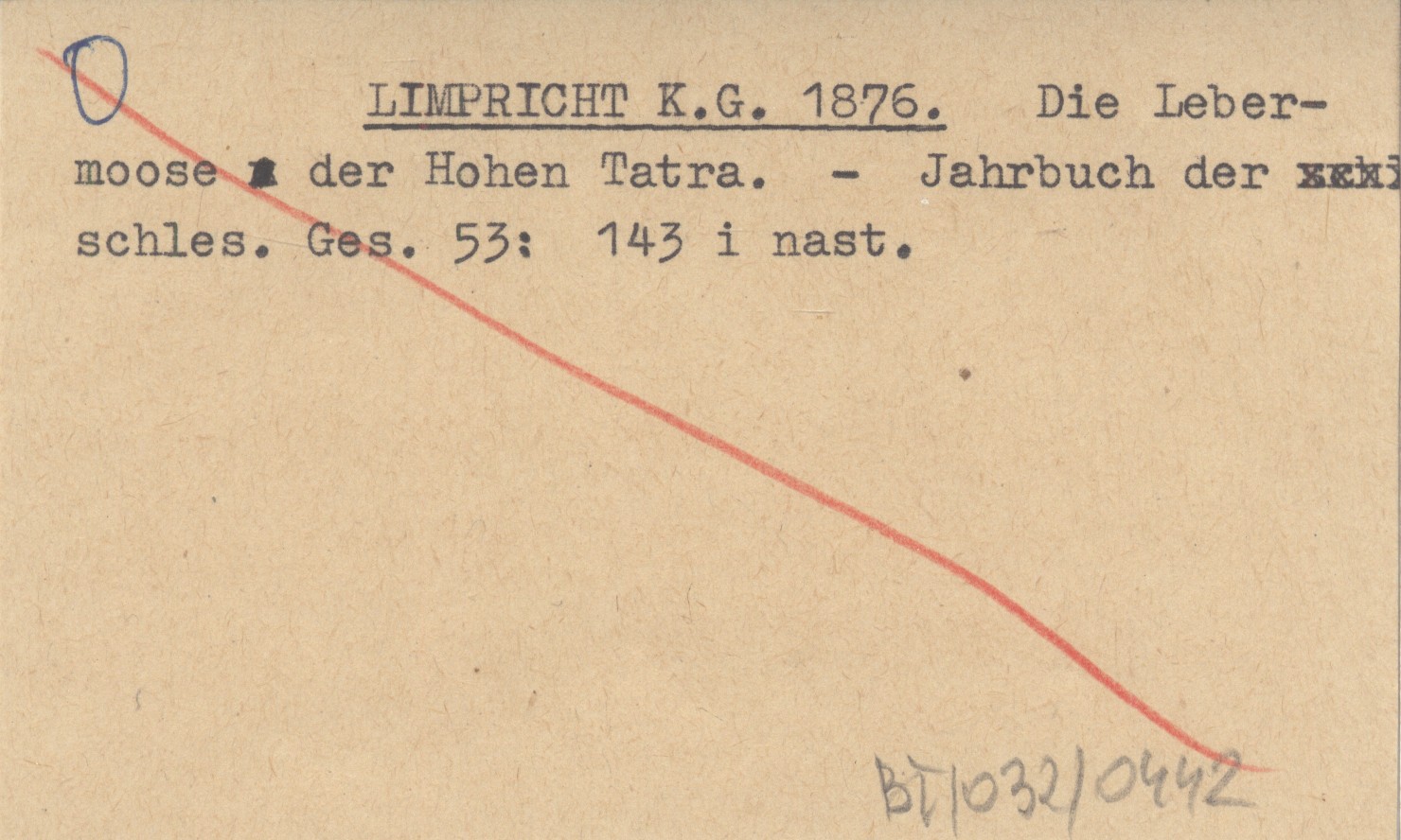 LIMPRICHT K. G. 1876 Die Lebermoose der Hohen Tatra.