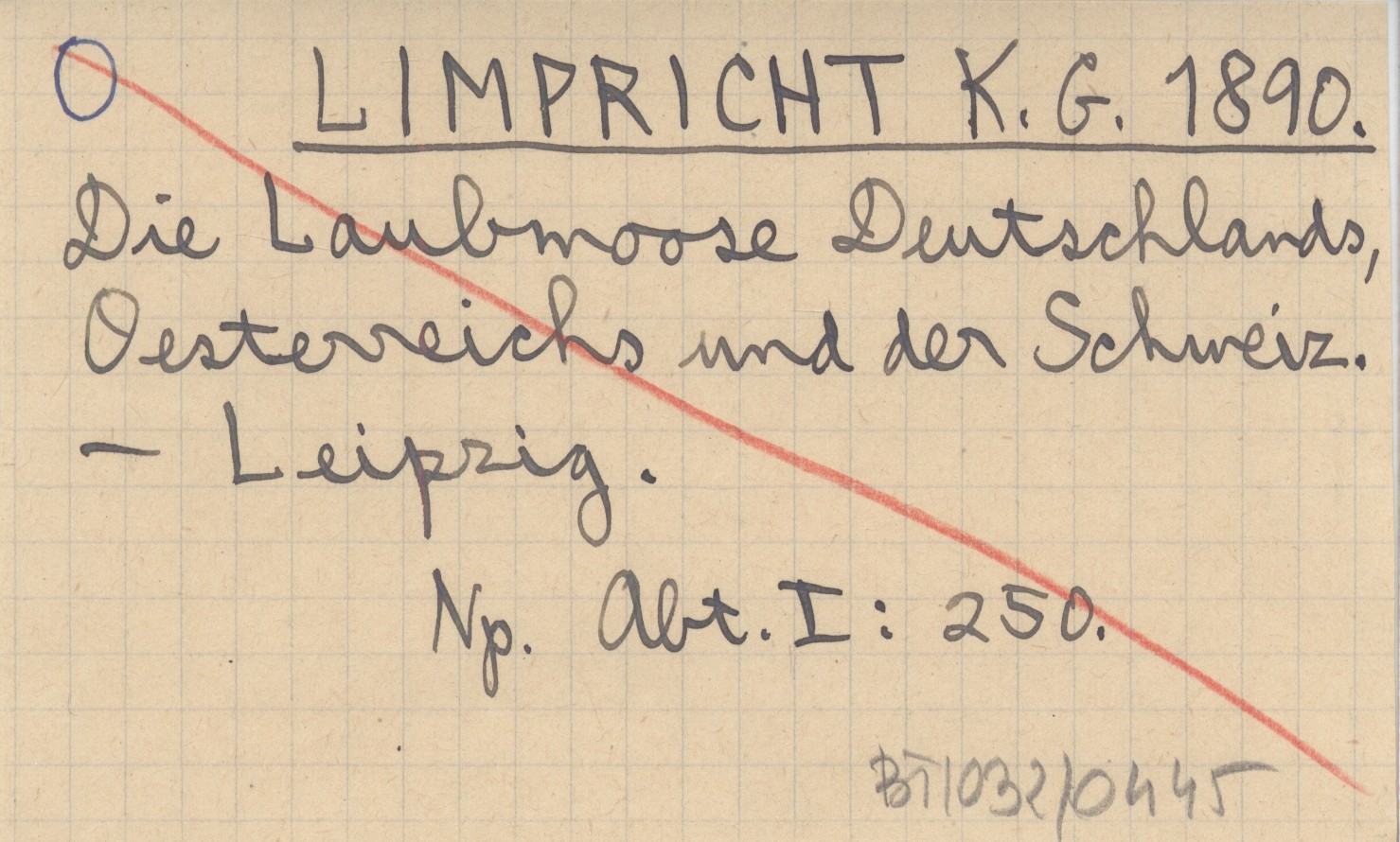 LIMPRICHT K. G. 1890 Die Laubmoose Deutschlands, Oesterreichs und der Schweiz.