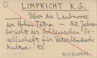 LIMPRICHT K. G. Über die Laubmoose der Hohen Tátra.