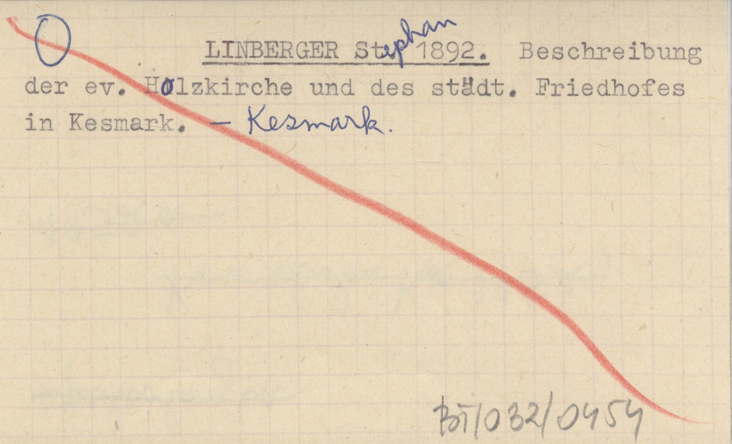 LINBERGER Stephan 1892 Beschreibung der ev. Holzkirche und des städt. Friedhofes in Kesmark.