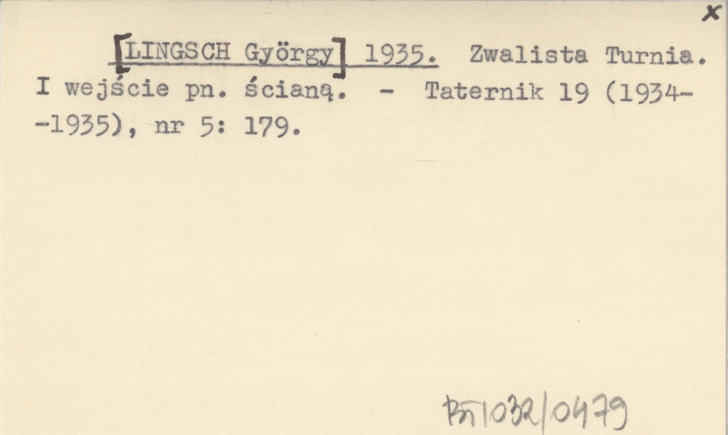 [LINGSCH György] 1935 Zwalista Turnia. I wejście pn. ścianą.