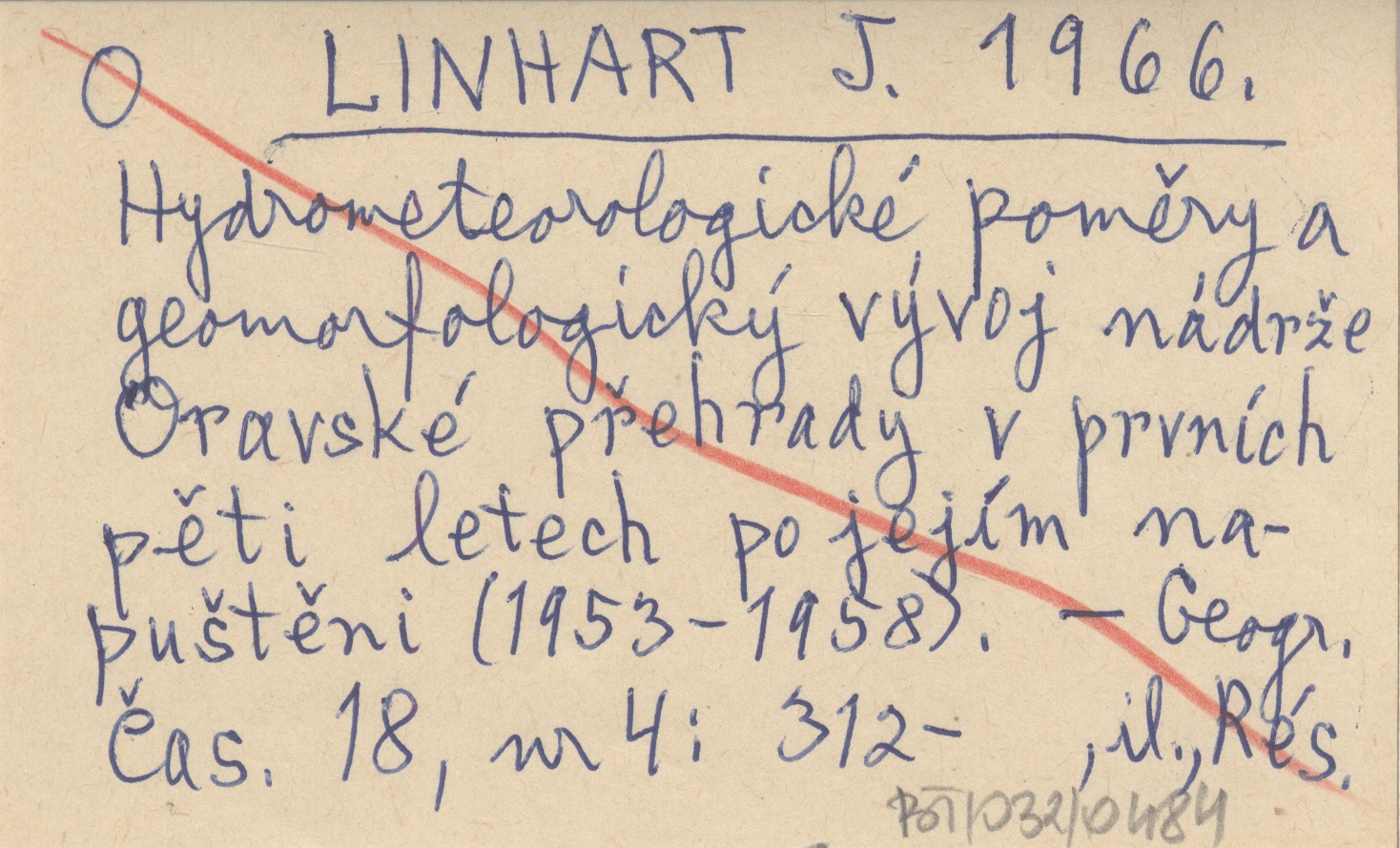 LINHART J. 1966 Hydrometeorologické poměry a geomorfologický vývoj nádrľe Oravské přehrady v prvních pěti letech po jejím napuątěni (1953-1958).