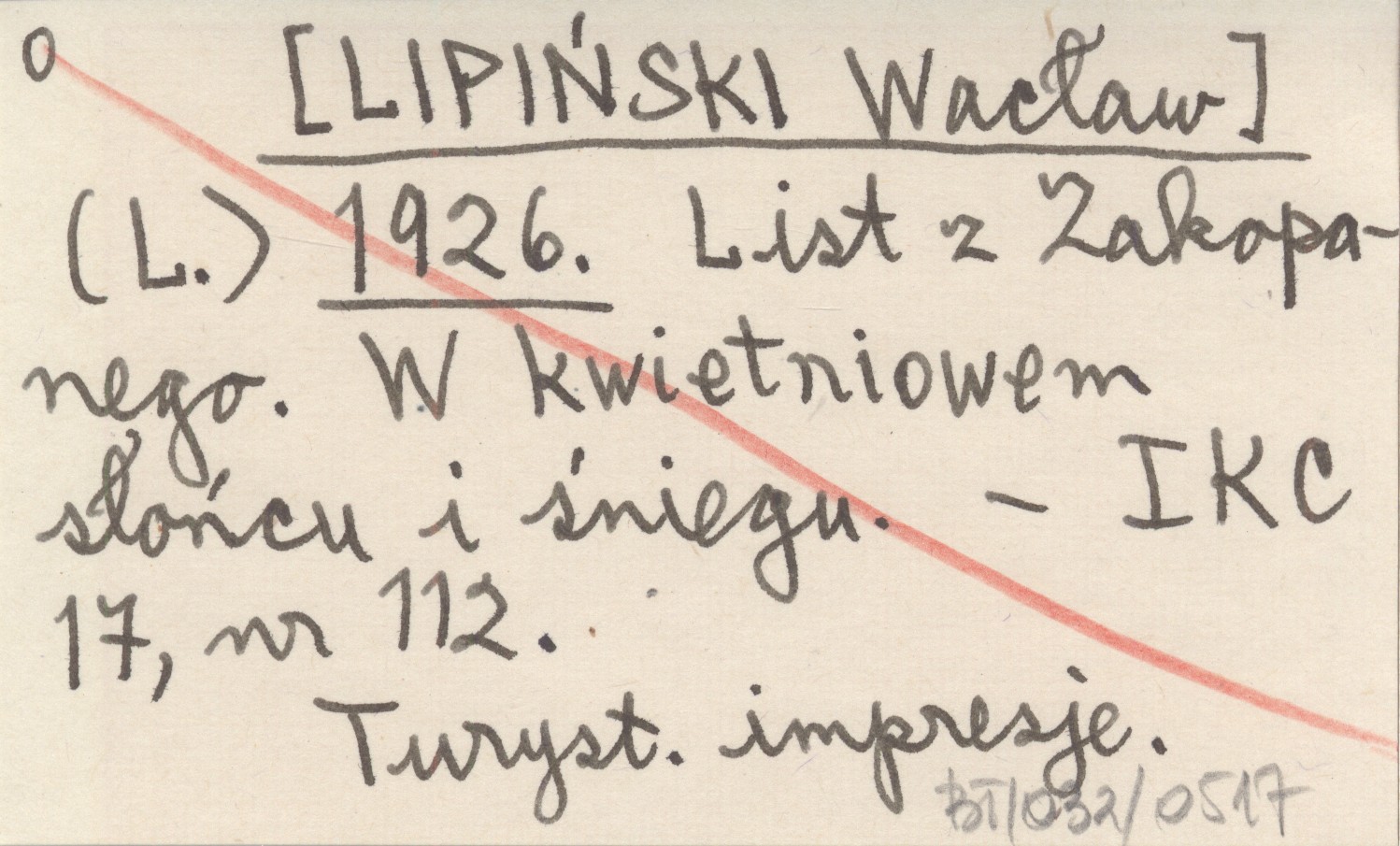 (L.) [LIPIŃSKI Wacław] 1926 List z Zakopanego. W kwietniowem słońcu i śniegu.