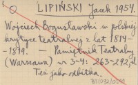 LIPIŃSKI Jacek 1954 Wojciech Bogusławski w polskiej krytyce teatralnej z lat 1814-1819.
