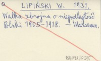 LIPIŃSKI W. 1931 Walka zbrojna o niepodległość Polski 1905-1918.
