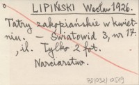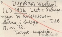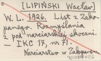 W. L. [LIPIŃSKI Wacław] 1926 List z Zakopanego. Rozmyślania z pod narciarskiej skoczni.