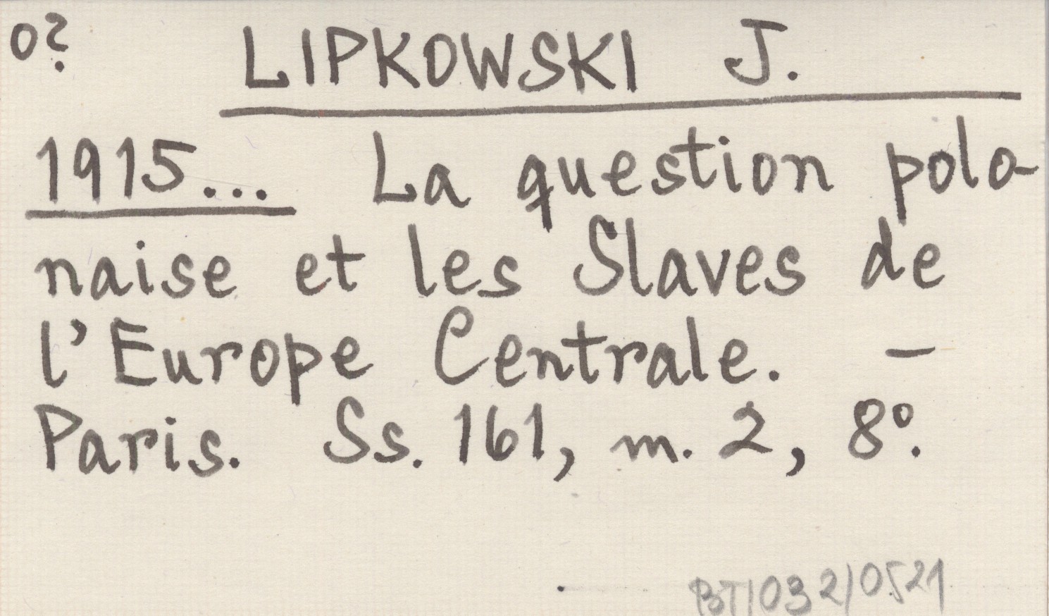 LIPKOWSKI J. 1915... La question polonaise et les Slaves de l'Europe Centrale.