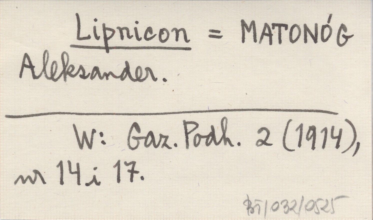 Lipnicon MATONÓG Aleksander Gazeta Podhalańska 2 (1914), nr 14, 17.