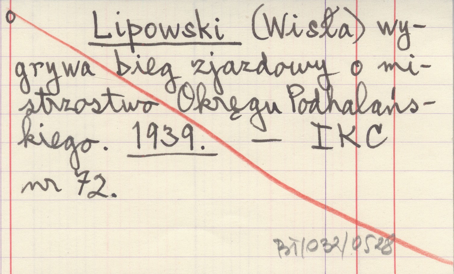Lipowski (Wisła) wygrywa bieg zjazdowy o mistrzostwo Okręgu Podhalańskiego. 1939