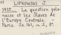 LIPKOWSKI J. 1915... La question polonaise et les Slaves de l'Europe Centrale.