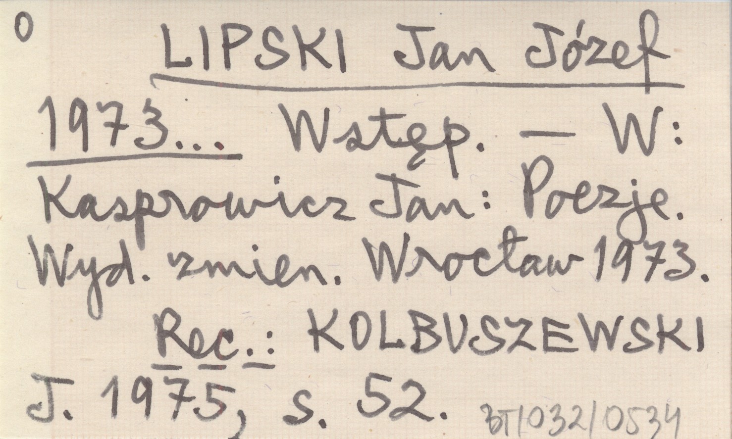 Kasprowicz Jan: Poezje. Wyd. zmien. Wrocław 1973. , REC: KOLBUSZEWSKI J. 1975, s. 52